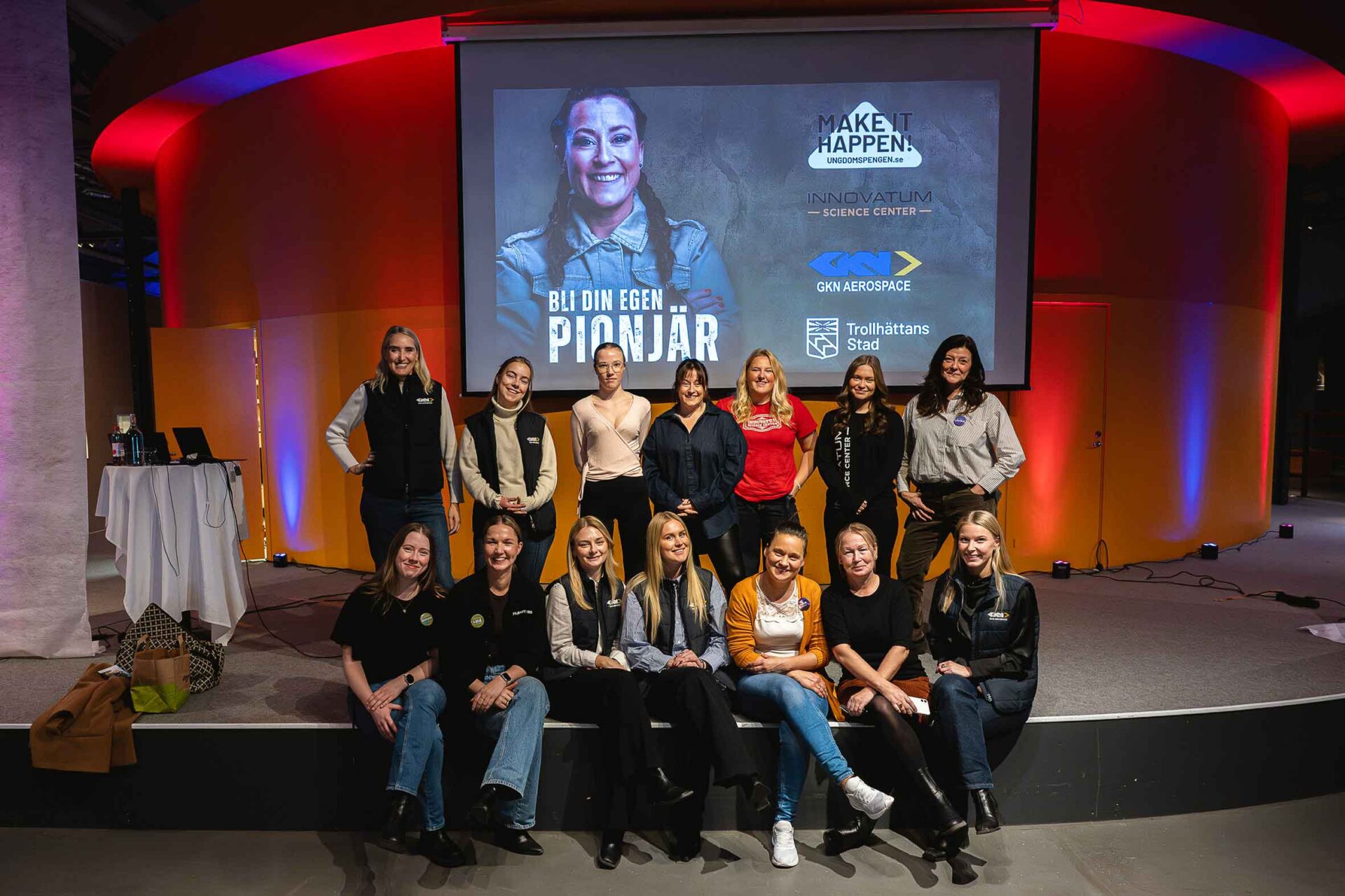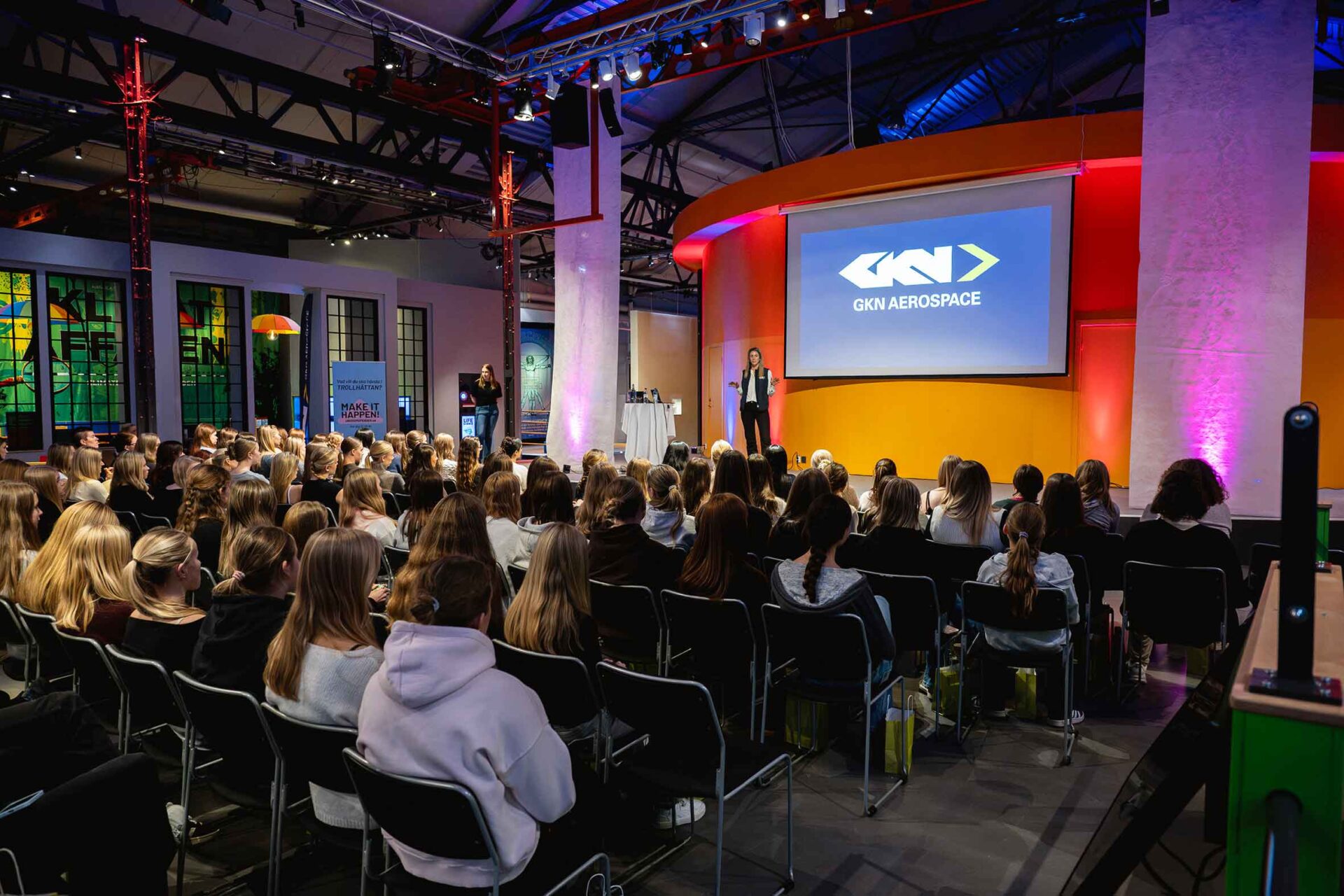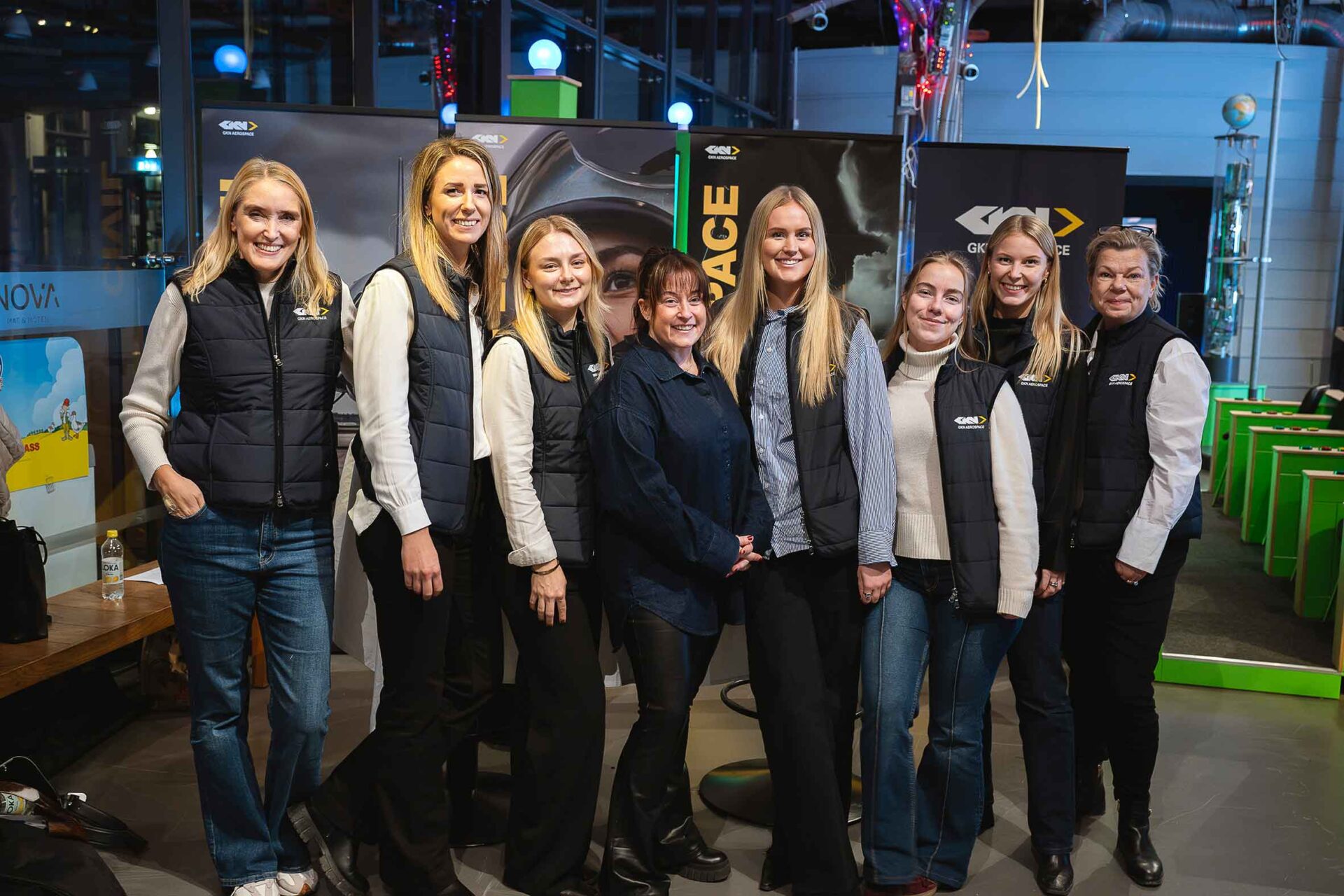 Så småningom anlände kvällens besökare i en strid ström, och alla fick varsin goodiebag sponsrad av GKN Aerospace Sweden som också fanns på plats med ett gäng representanter. Däribland Malin Hjalmarsson, som berättade om sin yrkesmässiga bana.